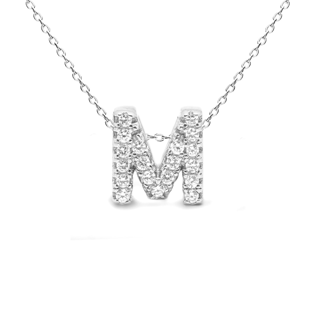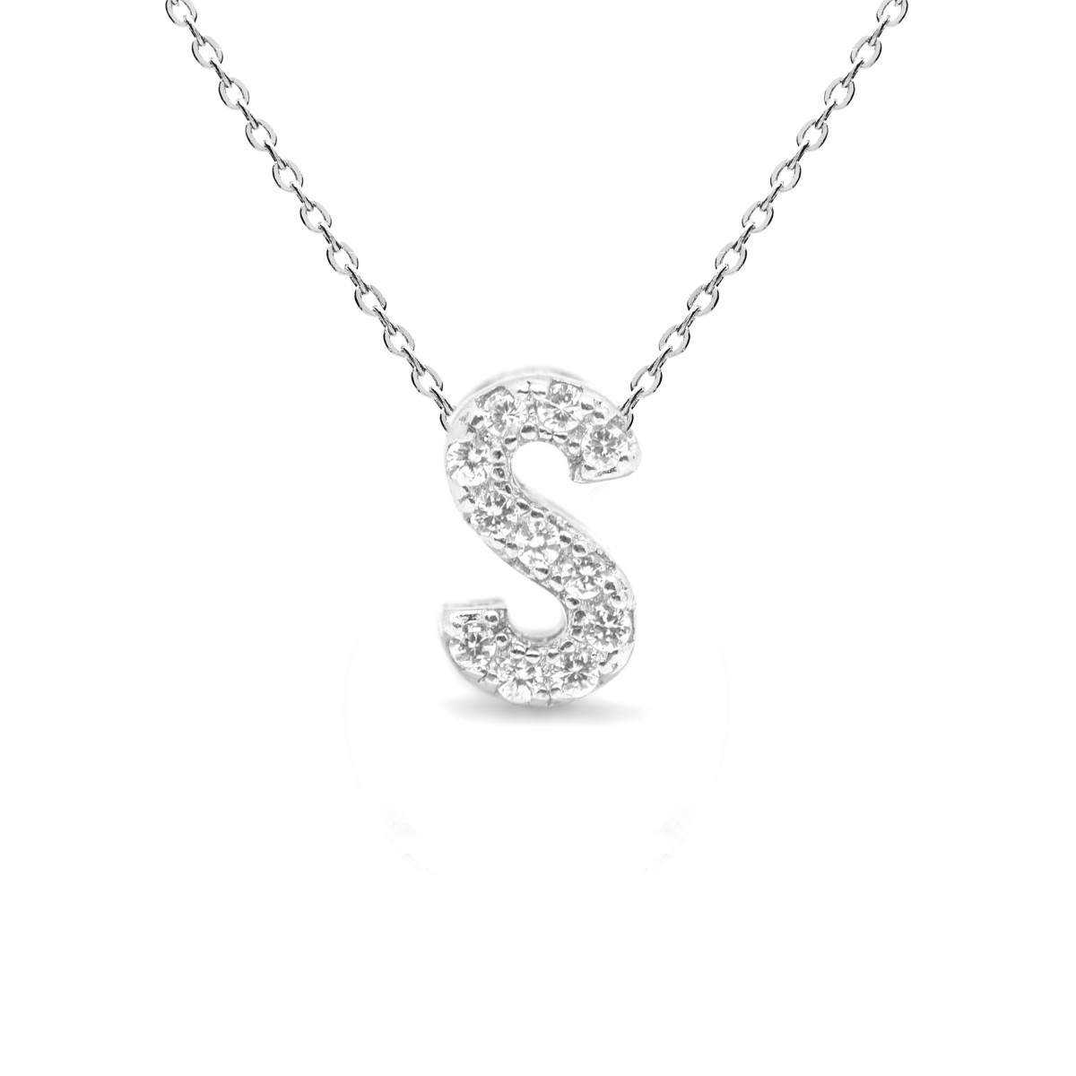 Cadena y colgante de plata de la colección Alphabet con circonitas brillantes .Consigue tu inicial.